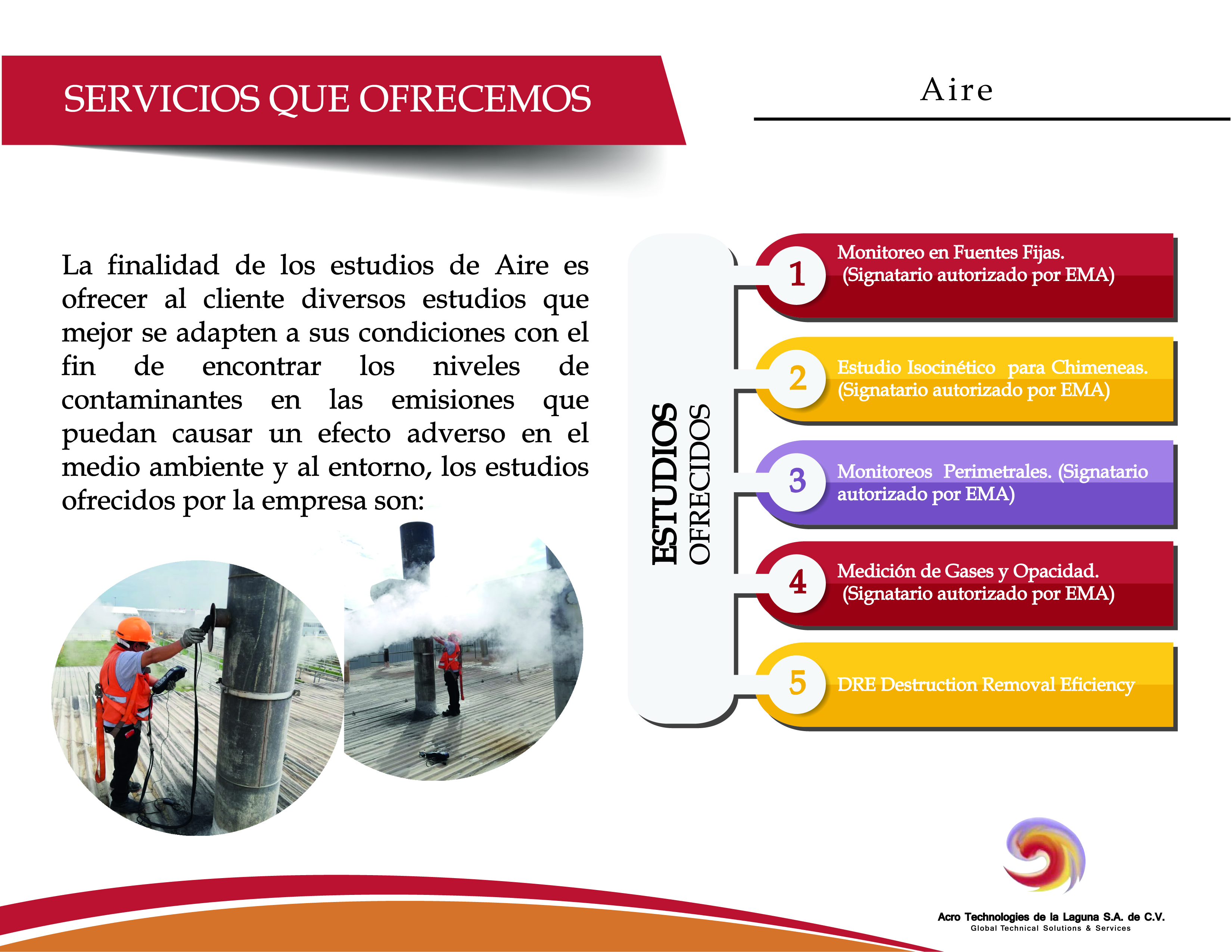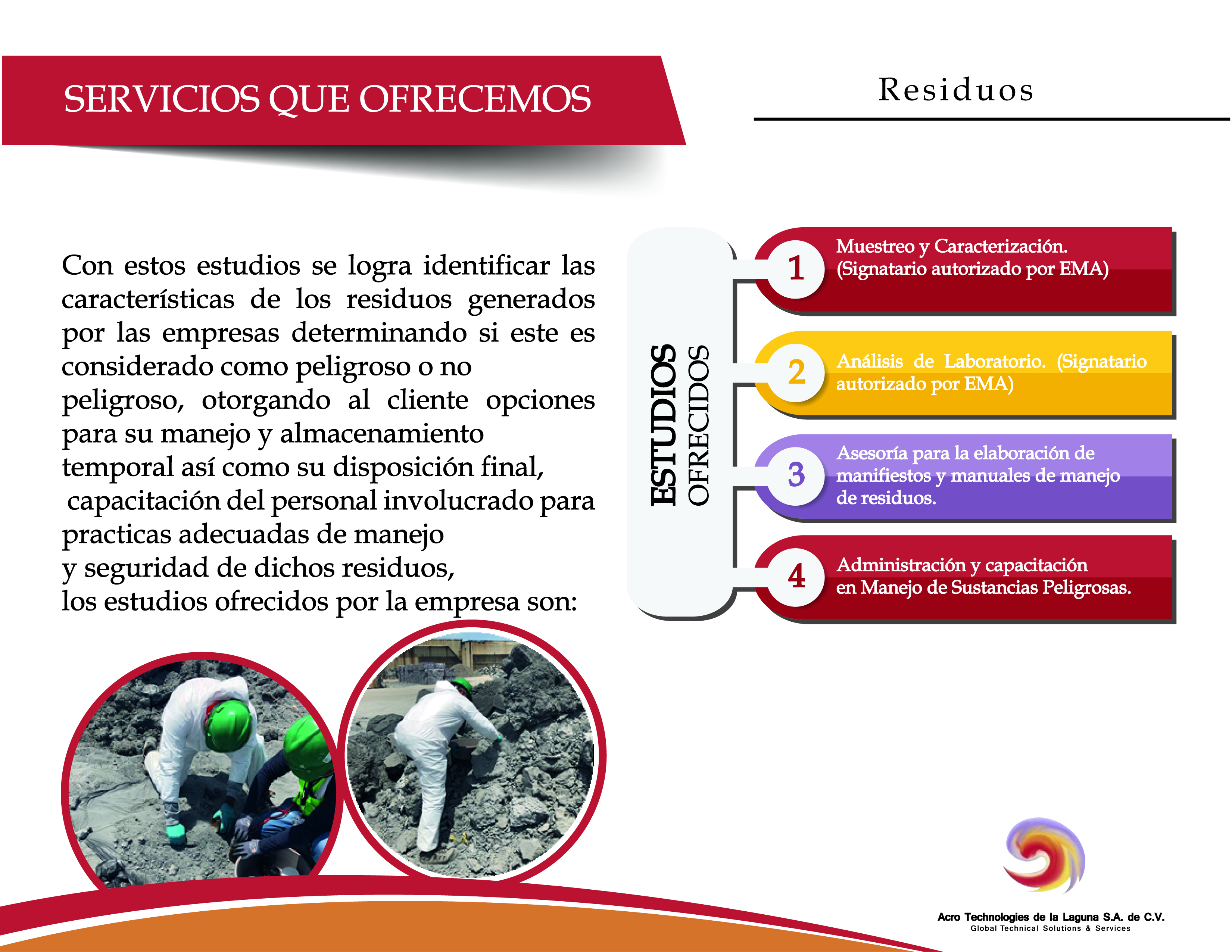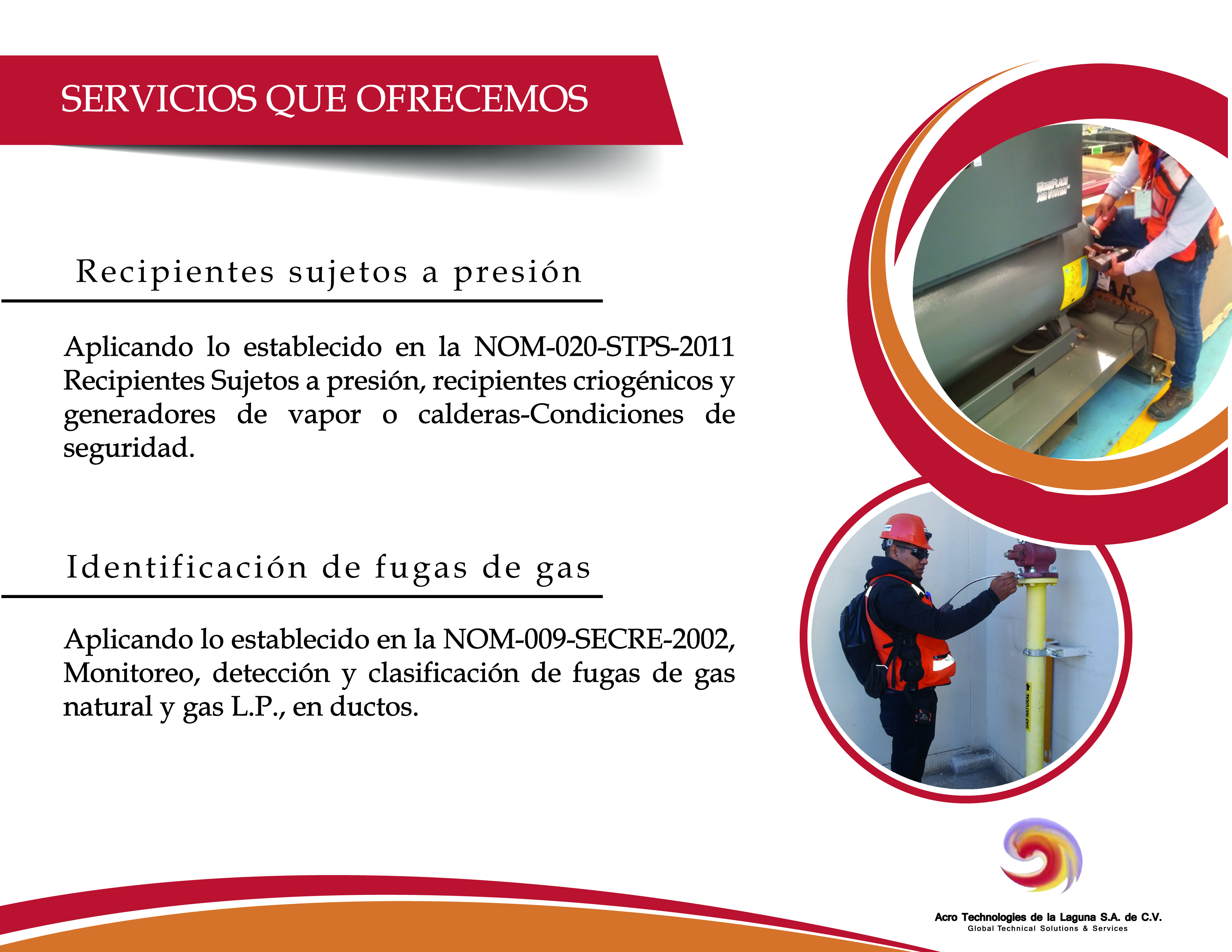 Acro Technologies de la Laguna S.A. de C.V. cuenta con personal debidamente capacitado, acreditado y aprobado para la prestación de servicios en los siguientes rubros: