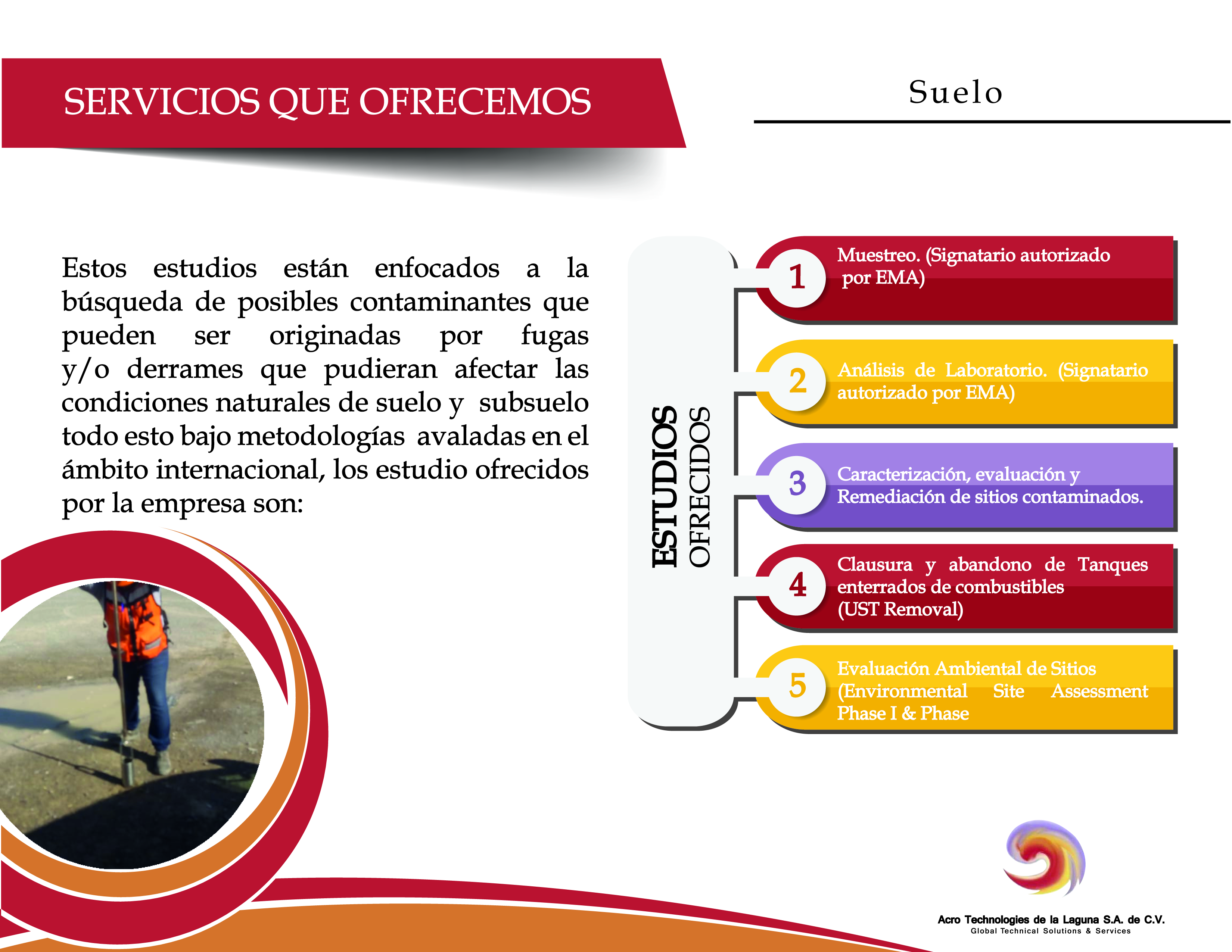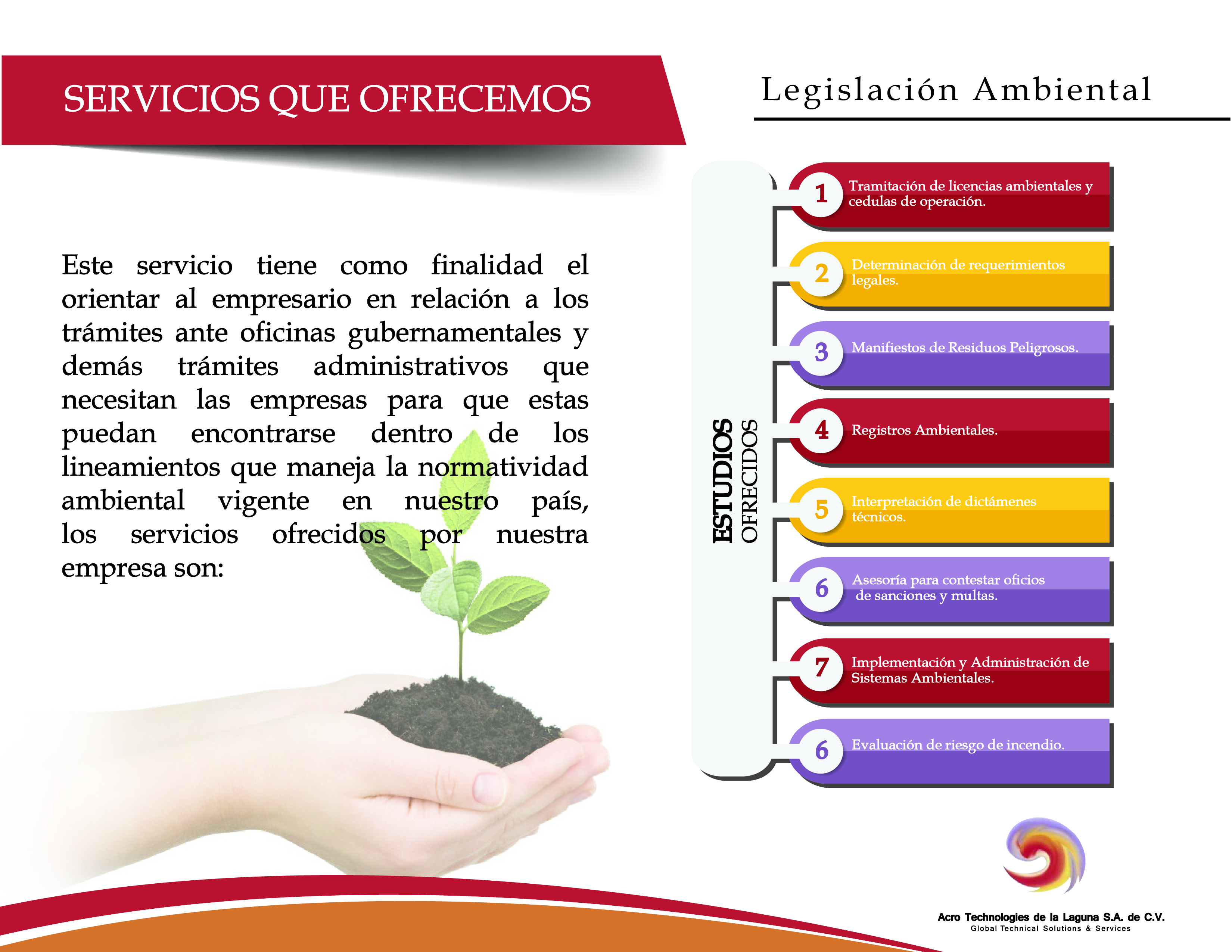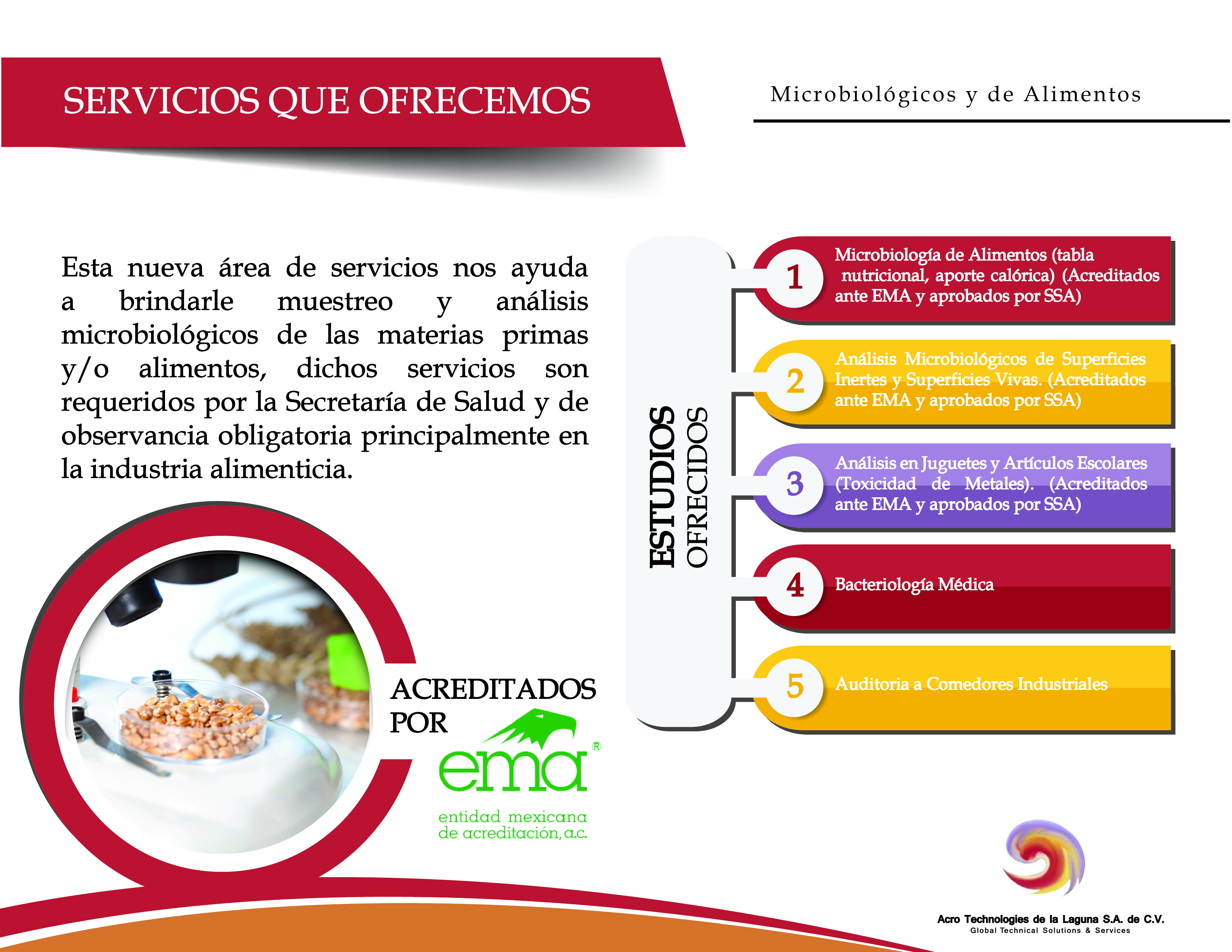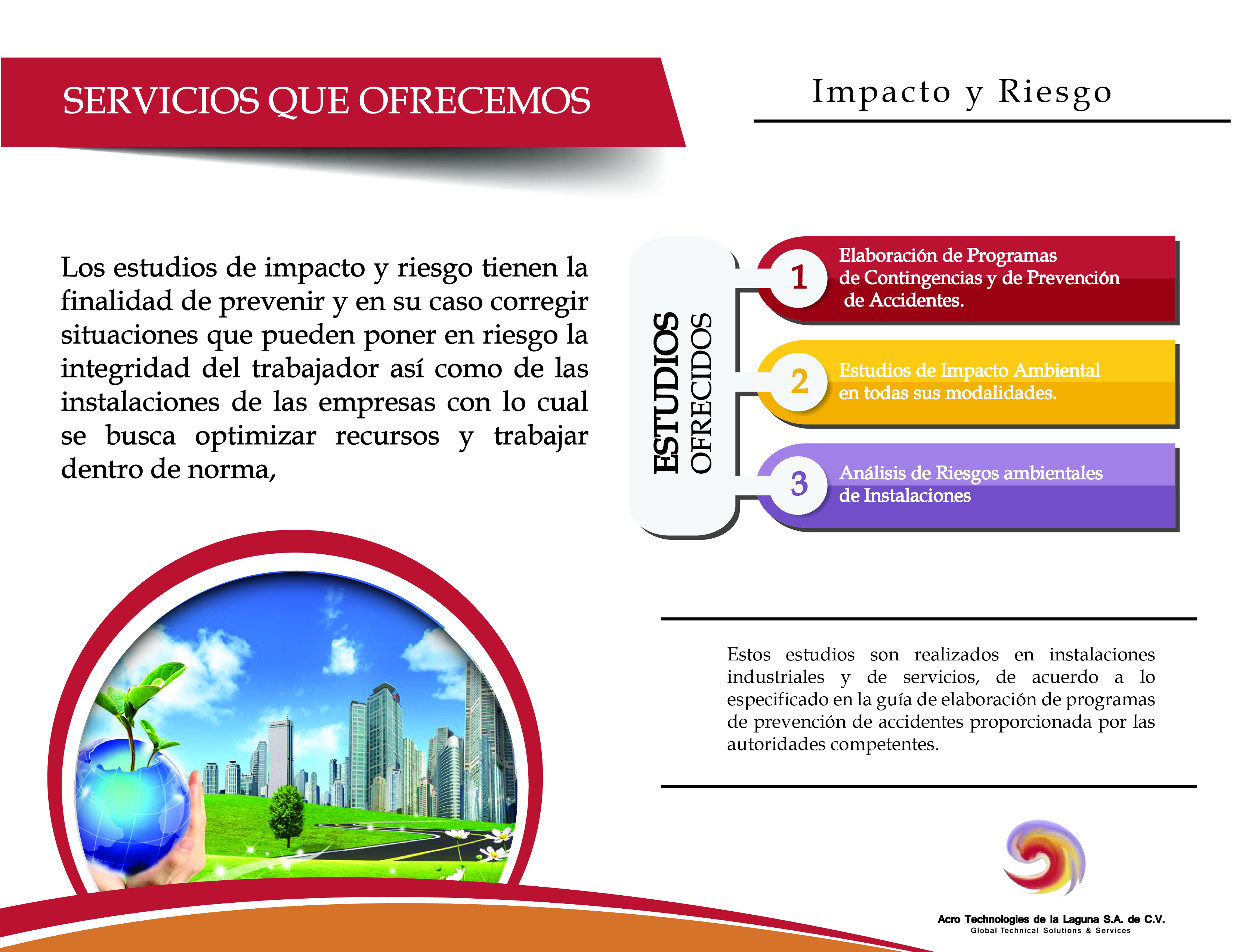 Acro Technologies de la Laguna S.A. de C.V. cuenta con personal debidamente capacitado, acreditado y aprobado para la prestación de servicios en los siguientes rubros: